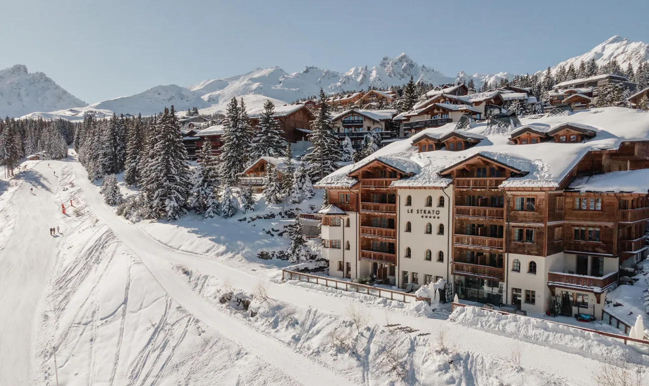 If you are looking for a tranquil location, then look no further than Le Strato. The hotel sits on the Cospillot slope with stunning views over the Courchevel valley. Created by the founder of Rossignol skis, the hotel perfectly balances tradition with contemporary décor, including a chic ski room. Le Strato’s Michelin starred and separate brasserie restaurant, and a stunning spa set over two floors provide a delicious option for après ski. Private shuttle service for trips into town along with evening entertainment